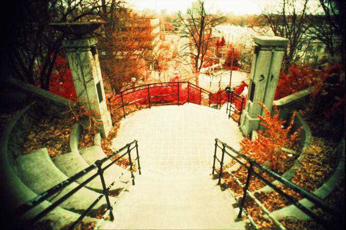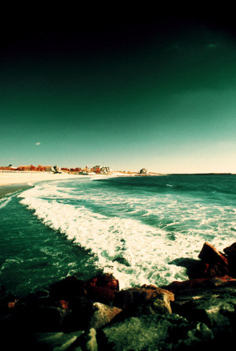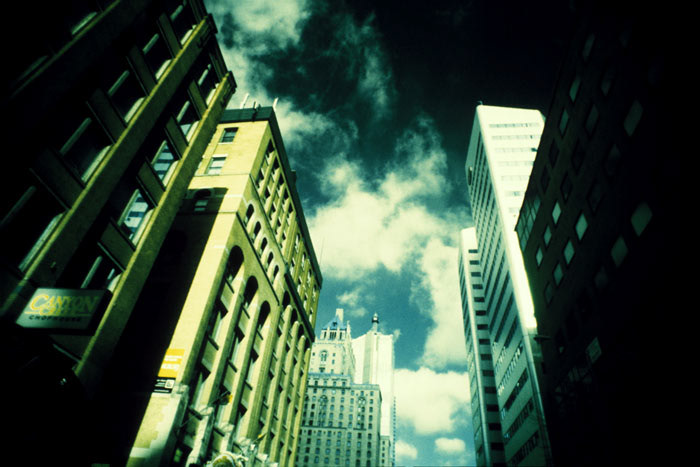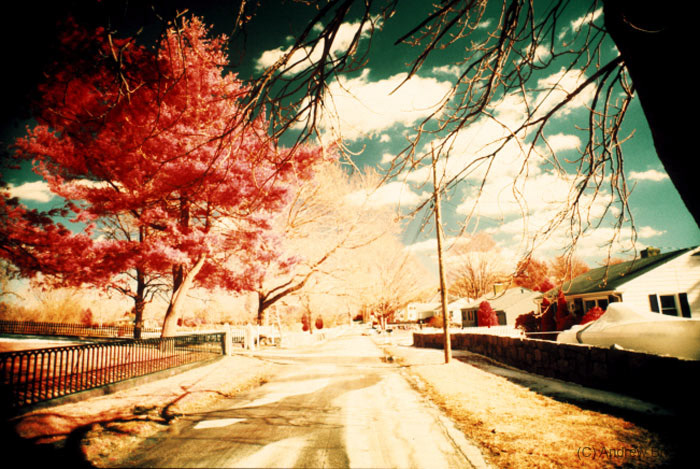 Non digital, color infrared photography of Toronto and the Connecticut shore.